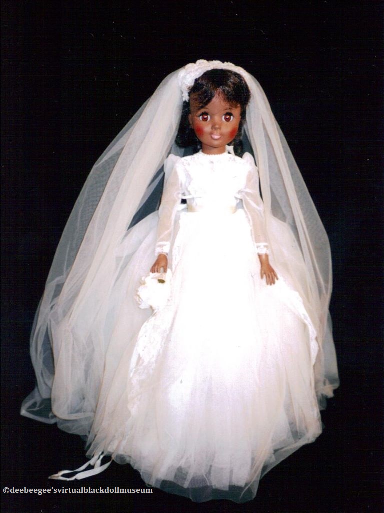 Madame Alexander often created dolls in honor of celebrities. The Leslie doll reportedly represents actress, singer, entertainer Leslie Uggams who was at the height of her career at the time the first Madame Alexander Leslie doll was made. The doll was available in a variety of fashions, one of which was a bride as seen in one of the gallery photographs.