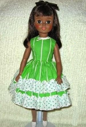 Other: Leslie dolls were made from 1965-1971 using both the Polly and Elise head sculpts, which were used on white dolls that preceded Leslie’s creation. The Polly face (the doll on the left) is more popular. Elise has a downturned smile.