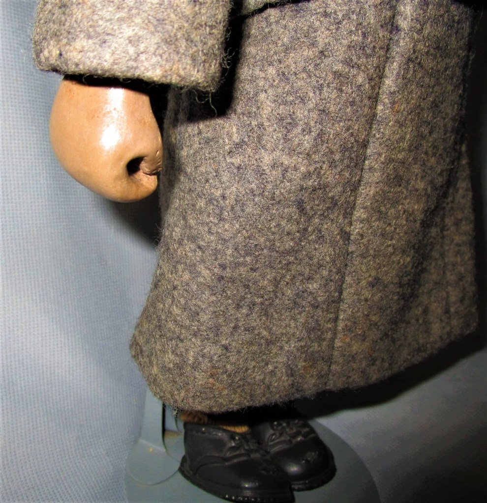 Material: Porcelain head and hands with tan cloth, sawdust-filled body, arms, legs and feet