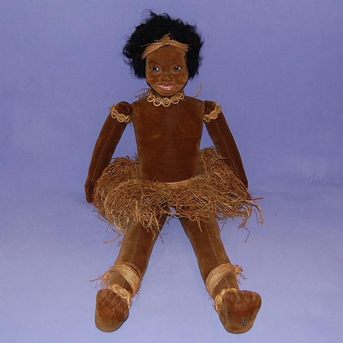Material: Stuffed velvet and velvet over sculpted face, jointed neck