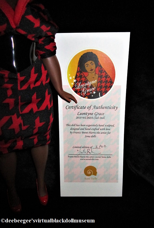 Other: This 12-inch full-figured doll was part of a doll commission for the Facebook Group, We Love Black Dolls Anew as their 2018 club doll. It was made in an ultra-limited edition of 20. Named after the opera singer Leontyne Price and Grace Jones, Leontyne Grace’s removable legs are attached with magnets. The dolls have an elegantly-designed personalized box, a doll stand, and a signed certificate of authenticity which has the artist’s headshot illustration of the doll on the front of the box (see the photograph of the COA in the slideshow).