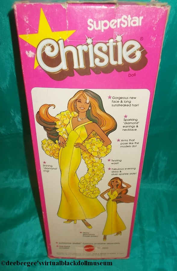 Other: Style #9950 SuperStar Christie uses the Steffie face mold. The back of the box illustrates and further describes the doll. A yellow star-shaped stand and a Barbie booklet are included. Because of SuperStar Christie’s popularity, the doll has its own Facebook page created by SuperStar Christie fans.