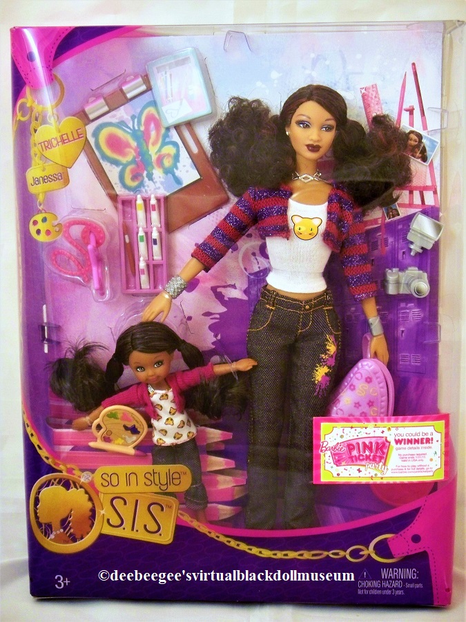 Other: Released in 2009, designed by Stacey McBride-Irby (former Mattel Project Designer), these giftsets are the first S.I.S. dolls released with the Chandra giftset being released last and apparently not widely released. Several different waves followed with additional dolls added (e.g. Grace’s boyfriend Darren and their friend Marisa). Not all dolls were released in subsequent waves. Trichelle is missing from some releases. The three core dolls are Grace, Kara and Chandra. McBride-Irby’s’ concept for the So in Style line was that Barbie’s friend, Grace (the main S.I.S. character), moved to Chicago to attend school where she met other friends. All 11-1/2-inch S.I.S. dolls use the Mbili sculpt, first used by Byron Lars’ doll of the same name in his Treasures of Africa collection.