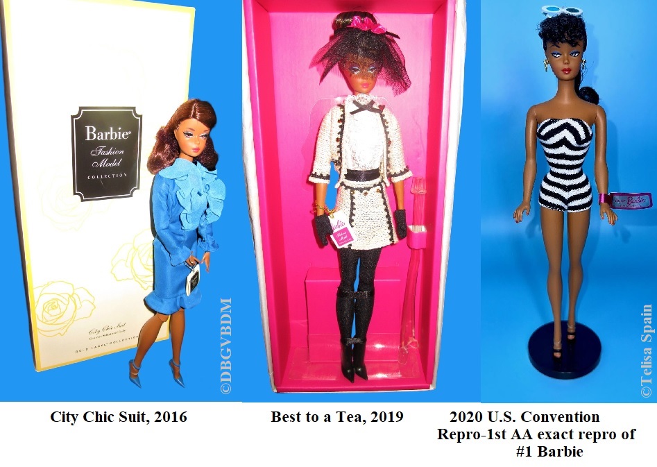 - 2020 U.S. Convention African American reproduction Barbie (1st AA exact reproduction of the #1 Barbie)
