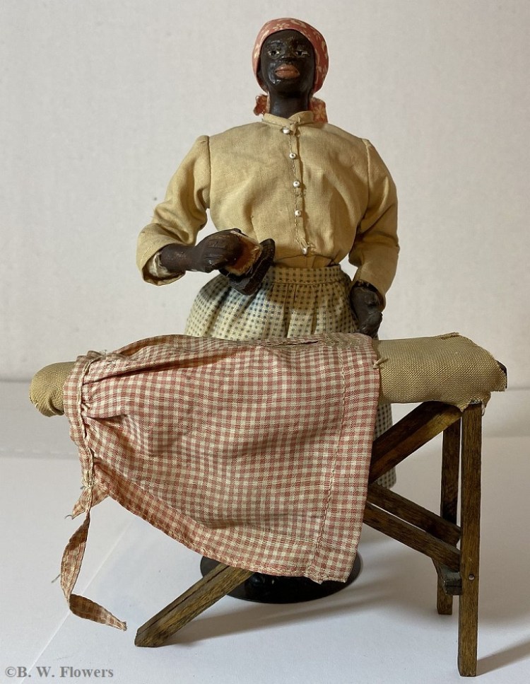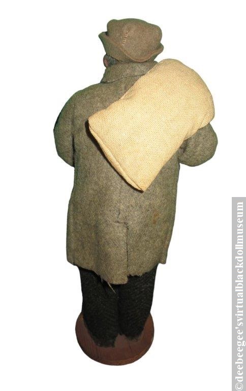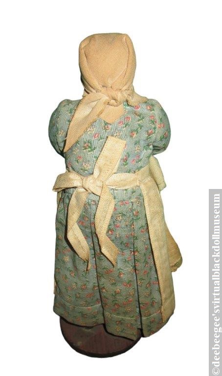 Marks: An address label (if present) under the wooden base includes the doll’s handwritten name and occupation and Blackman’s mailing address; later labels include the same information along with the doll’s description or role in society.
