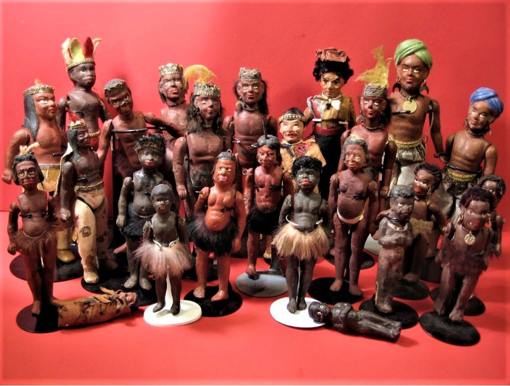 Other: This striking figure is part of a large series of men, women, and children of various ethnicities. See the group photo of more African, Native American, East Indian, and other dark-skinned figures from the same series of antique dolls and figures. A similar 6-inch African figure appears on page 28 of Black Dolls Book II an Identification and Value Guide by Myla Perkins (Collector Books, 1995). The doll in Perkins’ book is from the collection of Michael Wolk-Laniewski. The African Man and the doll group shown here are from the collection of a museum benefactor.