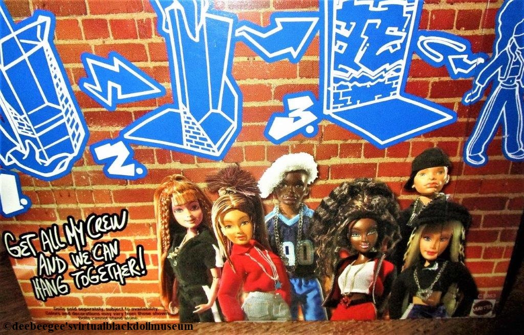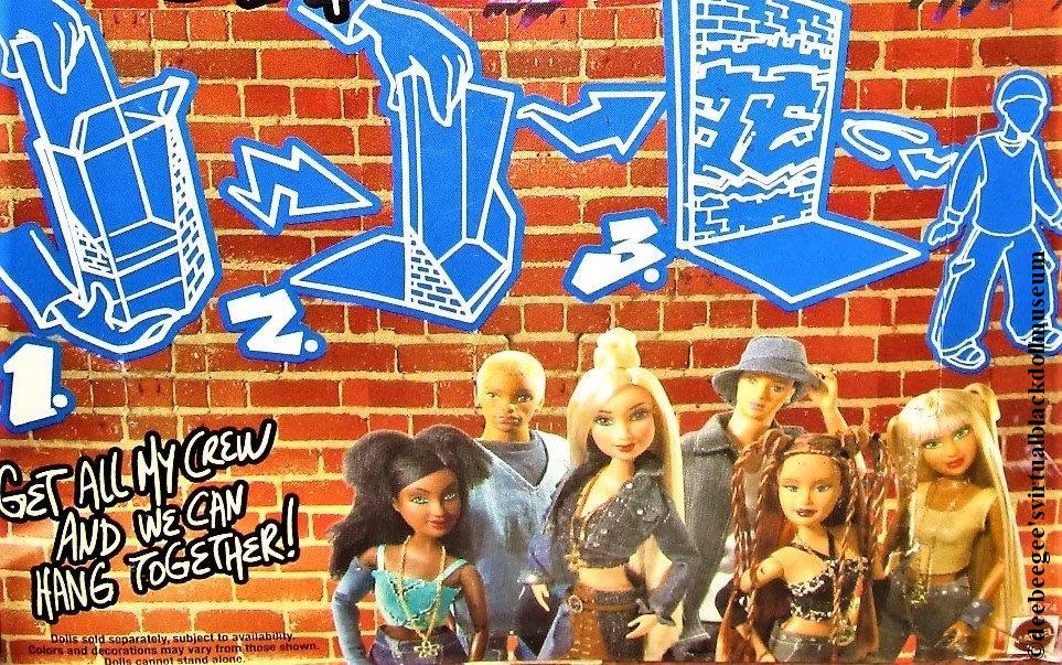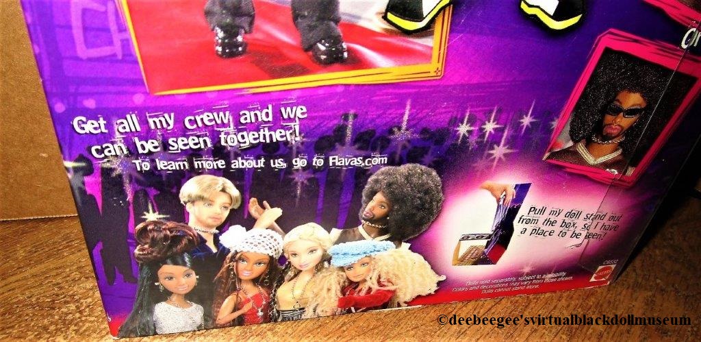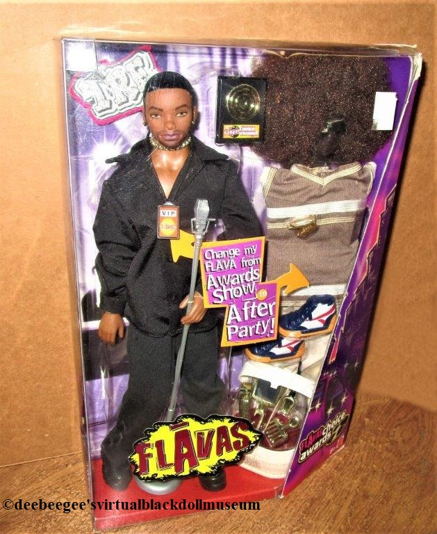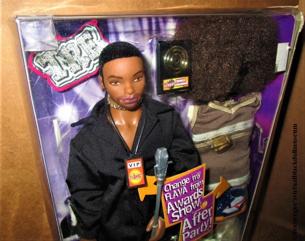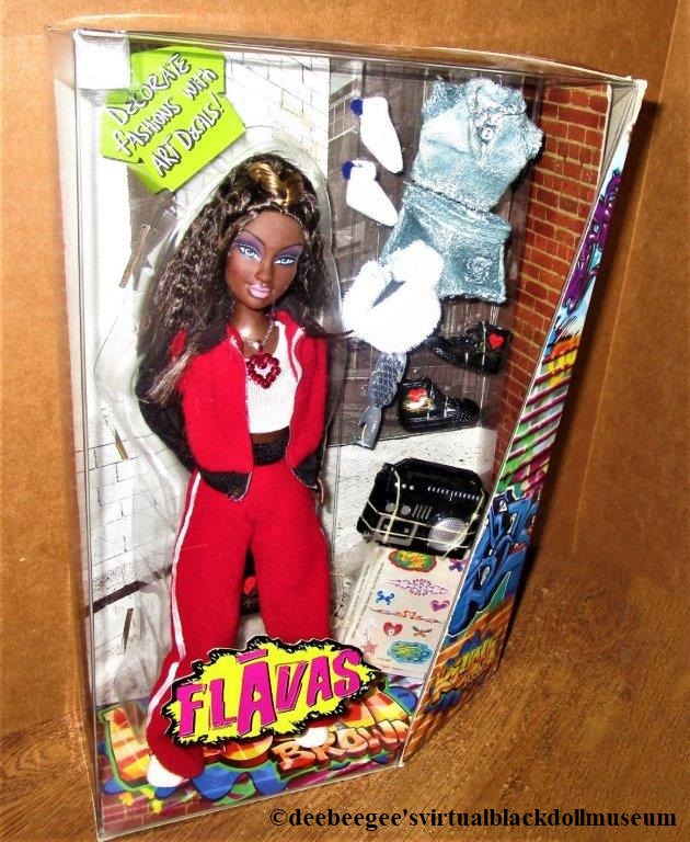 Other: Designed in an attempt to represent members of the hip-hop culture, each doll is dressed in “street-style” clothes with graffitied boxes and pull-out stands to create a “hanging out” scene. More than one version of Tre, Kiyoni Brown and the other Flavas dolls was released. Considered stereotypical, misrepresentations of the hip-hop culture by some and poor role models for children by others, this multicultural, multiarticulated doll line’s shelf life was limited to less than a year. Among adult collectors, the dolls remain popular. See the gallery images that include all characters of the Flavas doll line.