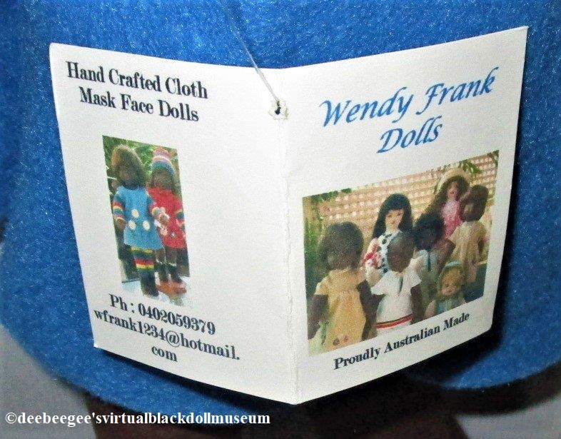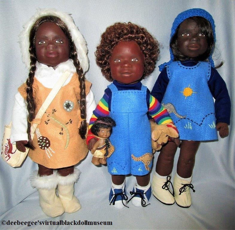 Wendy Frank described her dollmaking technique as “similar to the master’s Lenci, [Norah] Wellings, and [Käthe] Kruse).” Wendy began making the dolls for the same reason that black dolls were made in the US. “There just are no Aboriginal dolls for the Aboriginal kids here to feel pride and associate to, all bar white dolls painted or coloured black, or for that matter, very poor excuses for Australian Aboriginals… Aboriginal kids are some of the most gorgeous faces on this planet, in my opinion. It makes sense to make dolls that look like them. They deserve their own dolls as do all ethnicities.” [Dolls magazine] Read more from the Dolls article here.