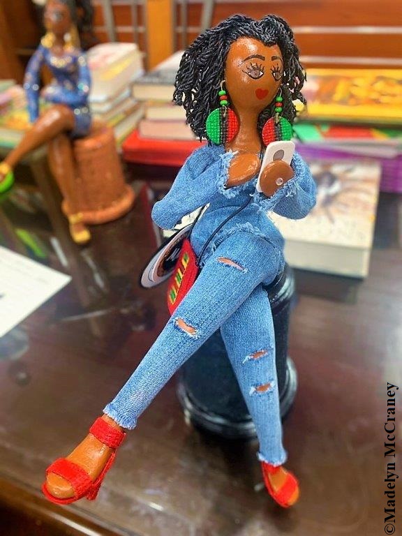 All dolls in this installation are by Madelyn McCraney of Kuumba Art Design Studio, “whose passion, purpose, and heart’s desire are simple; glorify God in all that she does and bring joy to the hearts of her clientele through her uniquely created Kuumba Art custom dolls.” Madelyn describes her dolls as “3D paintings brought to my audience in doll fashion” (Kuumba Art Bio).