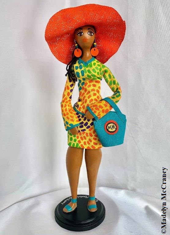 Other: To explain the use of burlap for each doll, the artist’s bio further states, “Madelyn’s journey into the art of doll making and the use of her signature burlap materials began simply enough by turning a negative discovery of a burlap bag with an ugly racist image, which appalled her, to a vow to make something beautiful out of the very thing that that was meant to cause harm. She took the bag home, washed it, hung it up to dry and forgot about it. A short while after that experience, Madelyn was commissioned by a gallery owner to design a Tree of Angels for Christmas. As she had never created anything like that before, she prayed and asked God for guidance to make the angels. As the Creator of all things, God was and still is her source. He showed her what she needed to do, and she went to work. Her first designs were made with African fabrics, which after a while became mundane and predictable so she prayed again, this time for new direction. It was time to expand and grow and she remembered the burlap bag and her vow to create beauty from what she considered as ashes. ‘In His Grace,’ she discovered that God really does have a purpose and plan not only for her life, but also to enrich the lives of everyone. She asserts God’s word from Jeremiah 29:11 ‘For I know the plans I have for you,’ declares the LORD, ‘plans to prosper you and not to harm you, plans to give you hope and a future.’”