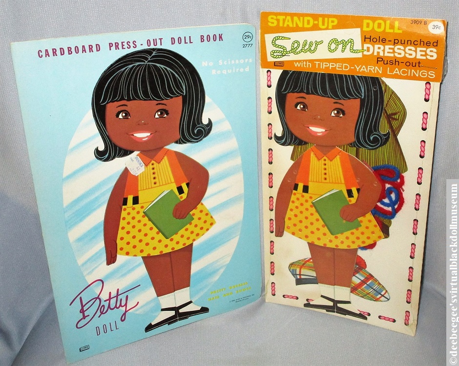 Sizes: The dolls are 11 inches tall. Betty’s book measures 8-1/4 x 12 inches. The stand-up doll’s package measures 6-1/4 x 12-1/4 inches.