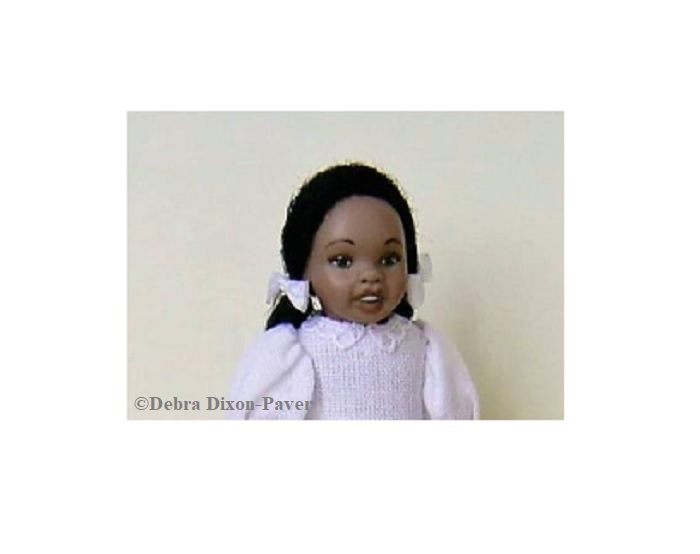 Other: Fashioned after 6-year-old Ruby Nell Bridges, the first African American child to enroll in a Louisiana elementary school in 1960, the doll is full-body porcelain in 1:12 dollhouse size, poured from a Parker-Levi mold called Becky. The child, Ruby Bridges was escorted to school by U.S. Marshals as depicted in the 1963 painting, “The Problem We All Life With” by Norman Rockwell.