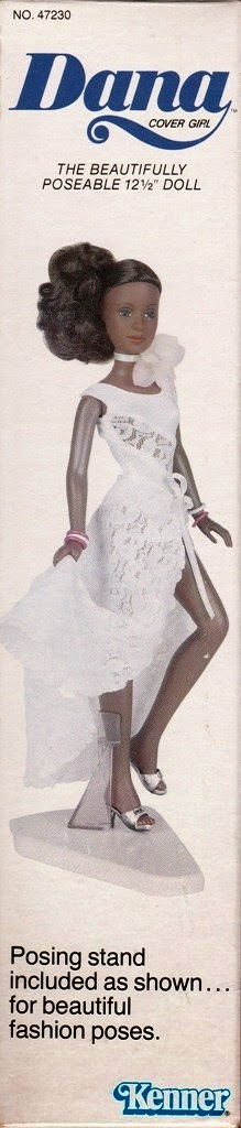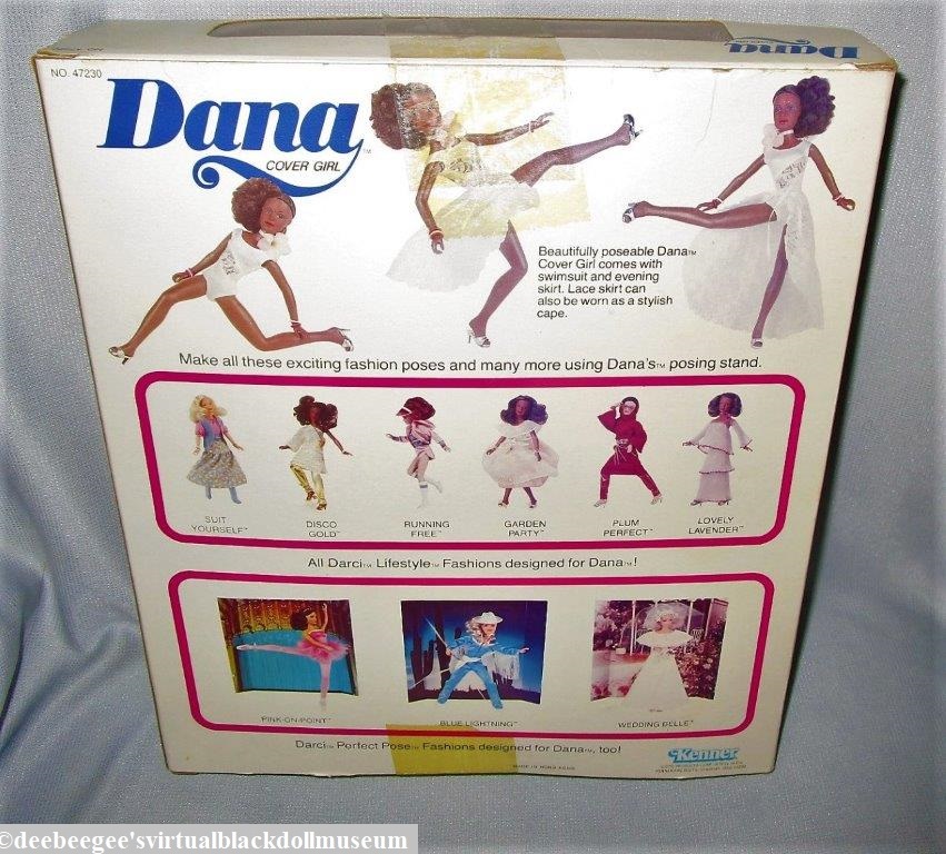 Other: Friend of Darci (the White-doll counterpart) Dana and Darci were created at the height of the American Disco era. The back of the box illustrates the many ways Dana can pose with or without her posing stand, which is also included in her package. Illustrations of several fashions, designed for Darci that Dana can also wear, are shown on the back of Dana’s box. With extra articulation at the wrists, Dana uses a similar, if not the same body as Hasbro’s Jem and the Holograms dolls.