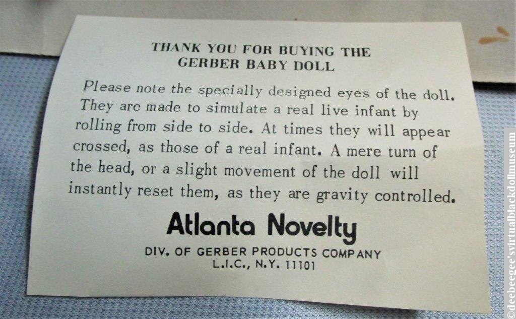 Marks: (Head) GERBER PRODUCTS CO. / ©1979; (Body Tag) Atlanta Novelty / DIVISION OF / Gerber Products Co. / LLC, N.Y. 11101