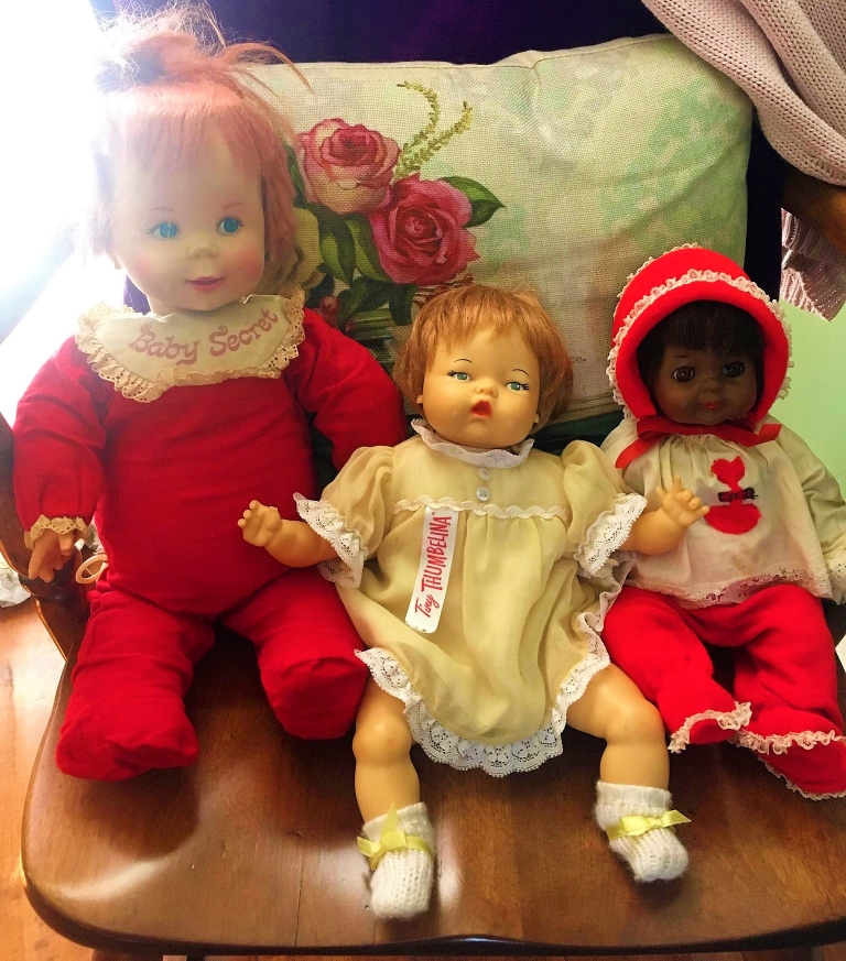 Recently you sold my daughter … one of your dolls, Angel Baby. She gave it to me as a Christmas gift. It brought tears to my eyes. As a little girl I loved dolls and each year I would get one from Santa. I played with them every day and they brought me great comfort especially since my mother had terminal cancer. In the 1960’s I was looking through the Sears Christmas catalog and I saw Angel Baby. There was a black and white doll shown. I circled the black doll immediately. My mom asked me if I was sure I wanted that one and I remember saying, “Yes, look how pretty her face is.” My mom smiled and that year I found Cher [the name she gave Angel Baby] sitting under my tree in her pretty red and white outfit. As an adult all my dolls were destroyed which broke my heart. Over the years I’ve tried to recollect them. Angel baby was the last missing one and [my daughter] found it through you. Thank you so much for selling her the doll. I took a picture… Thank you again for making the little girl in me smile. Blessings to you and yours.