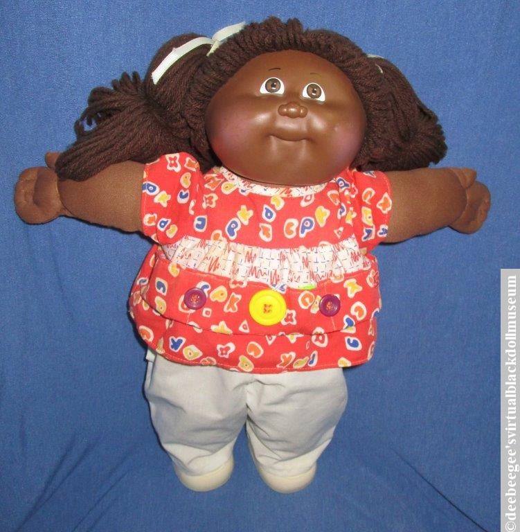 Hi, my mom has a black cabbage patch doll that she got back in the 70’s, she said she got her from one of Xavier Robert’s art showcases when she was a little girl (so before they were licensed and mass-produced in the 80’s). I think the doll she has pre-dates the recorded “first black cabbage patch dolls,” seeing as she was handmade with the cloth head, painted eyes, and hand-written signature on her bum (it’s beginning to fade away due to age). Please contact me for more info and pictures!