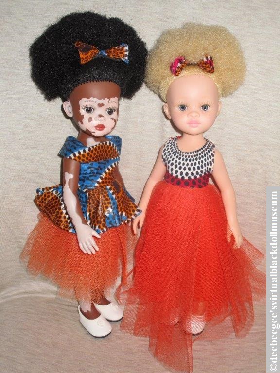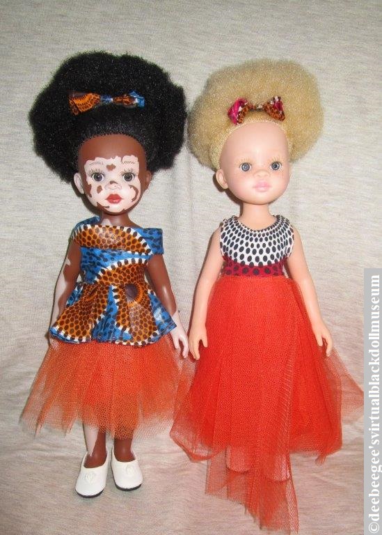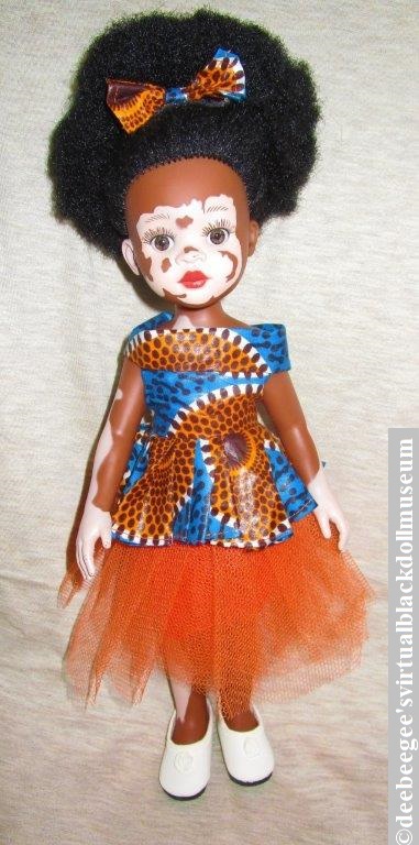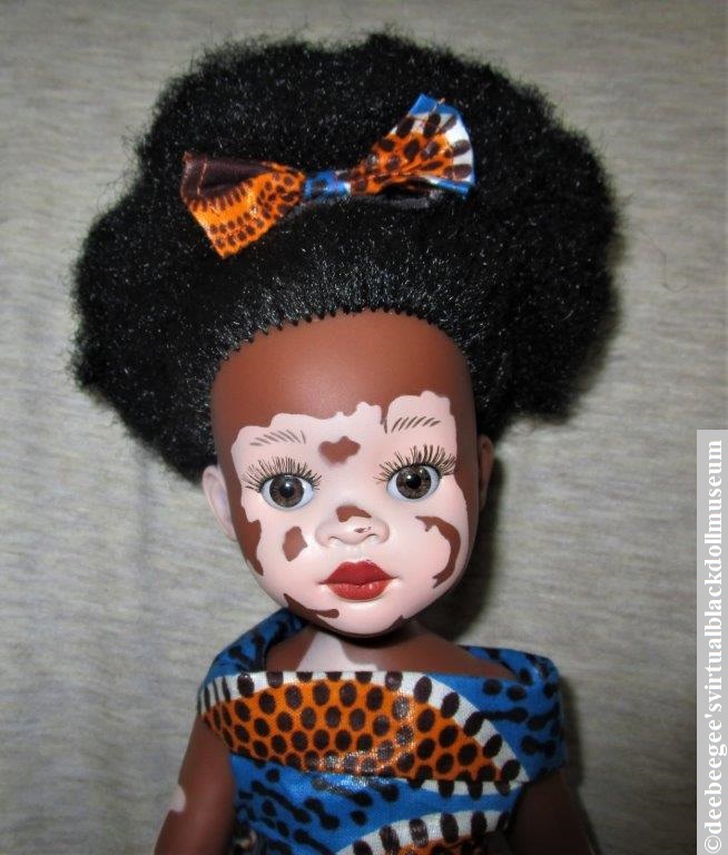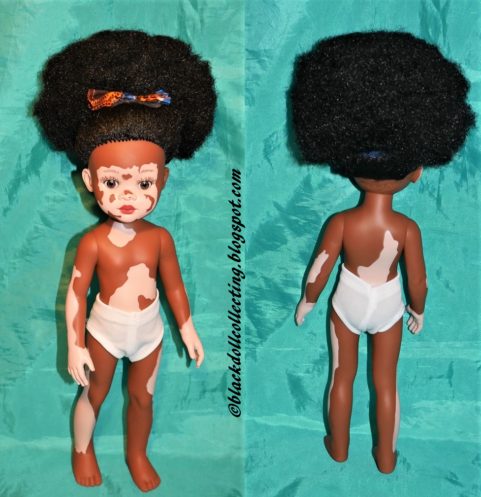 Other: Located in the United Kingdom, the Sibhale Collection was founded by two South African women. Sibahle is a Zulu word that means “we are beautiful.” According to their website, the doll collection “was born out of the need to teach our black children to be comfortable in their own skin.” The dolls are sourced from Paola Reina of Spain. Part of Sibahle’s Rainbow Nation collection, the dolls’ names mean beauty in different African languages. Ndanaka, which means “I am Beautiful ” in Shona represents a person with vitiligo. The vitiligo extends underneath clothing-covered areas as illustrated here and here. Zuri, which means beautiful in Swahili, represents someone with albinism.
