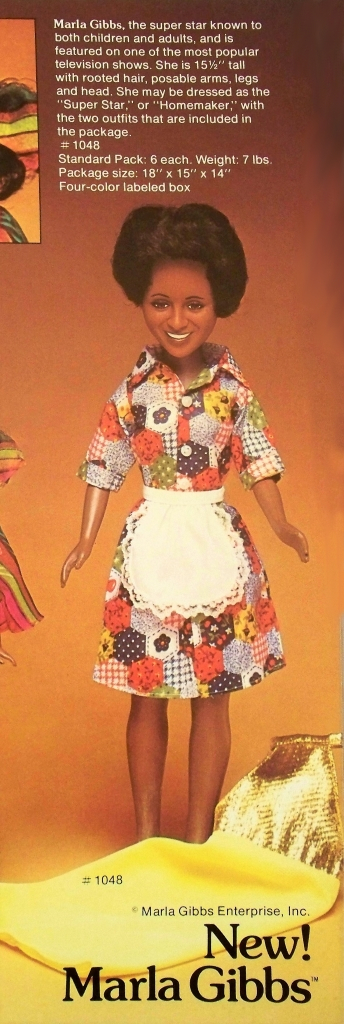 Other: Stock number 1048, Shindana’s portrait doll of actress, Marla Gibbs in her role as Florence the maid on The Jefferson’s sit-com is featured on page 1 of the 1978 Shindana catalog. The Marla Gibbs doll is one of several late-1960s to 1970s Black celebrity portrait dolls by Shindana.