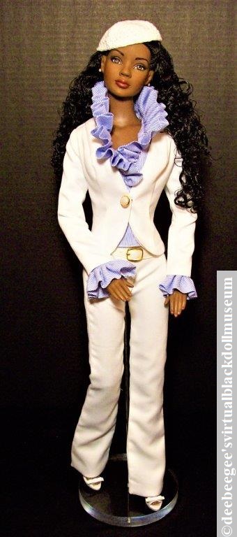 Other: Created in a limited edition of 300 to be dressed by the collector, the Basic American Models African American doll has articulated joints at the neck, shoulders, elbows, waist, hips, and knees. In one gallery photo, the doll models the CherishedFriends.com-exclusive “Mountain Retreat” outfit by Robert Tonner. The outfit, a limited edition of 300, includes the classically styled red duffle coat with Burberry plaid lining, a long-sleeved red turtleneck, distressed jeans; side zipped, tan suede ankle boots; red drop earrings, and a tan suede shoulder bag. The second modeled fashion is the “St. Tropez Style Outfit” by Robert Tonner—a white pants suit, blue and white striped ruffled blouse, white crocheted tam, white faux leather belt, and pearl stud earrings.