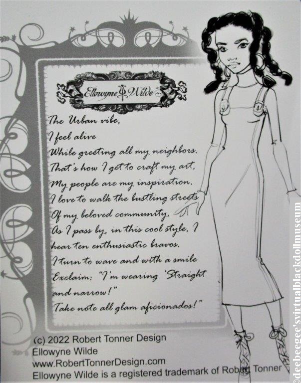 Other: Style # RT21NEDD18, Straight and Narrow Neema is one of four Neema dolls sold exclusively at the 2022 Better Together Virtual Doll Convention Pop-up. Made in a limited edition of 150 dolls, Neema sold out within 24 hours! Designed by Robert Tonner, Neema is part of the Ellowyne Wilde Collection. In addition to the usual five areas of articulation, articulation extends to underneath the breast area, at the elbows, wrists, and knees.