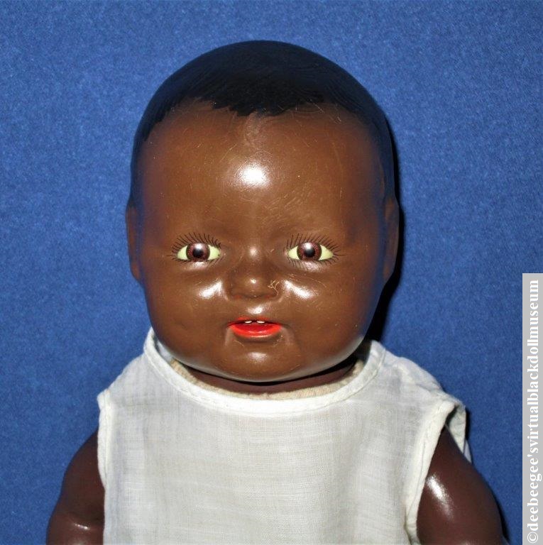 Other: Made to compete with Effanbee’s doll, Bubbles, Baby Dimples was sculpted by Bernard Lipfert, who is described by Don Jensen in Collector’s Guide to Horsman Dolls Identification and Values 1865-1950 (Collector Books, 2002) as “the most prolific sculptor in the history of American dolls.” Black versions of Baby Dimples are quite rare. Jensen describes a 13-1/2-inch-black version on page 123 of his Horsman dolls book.