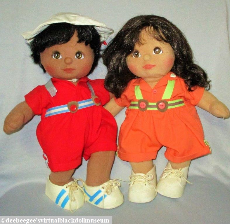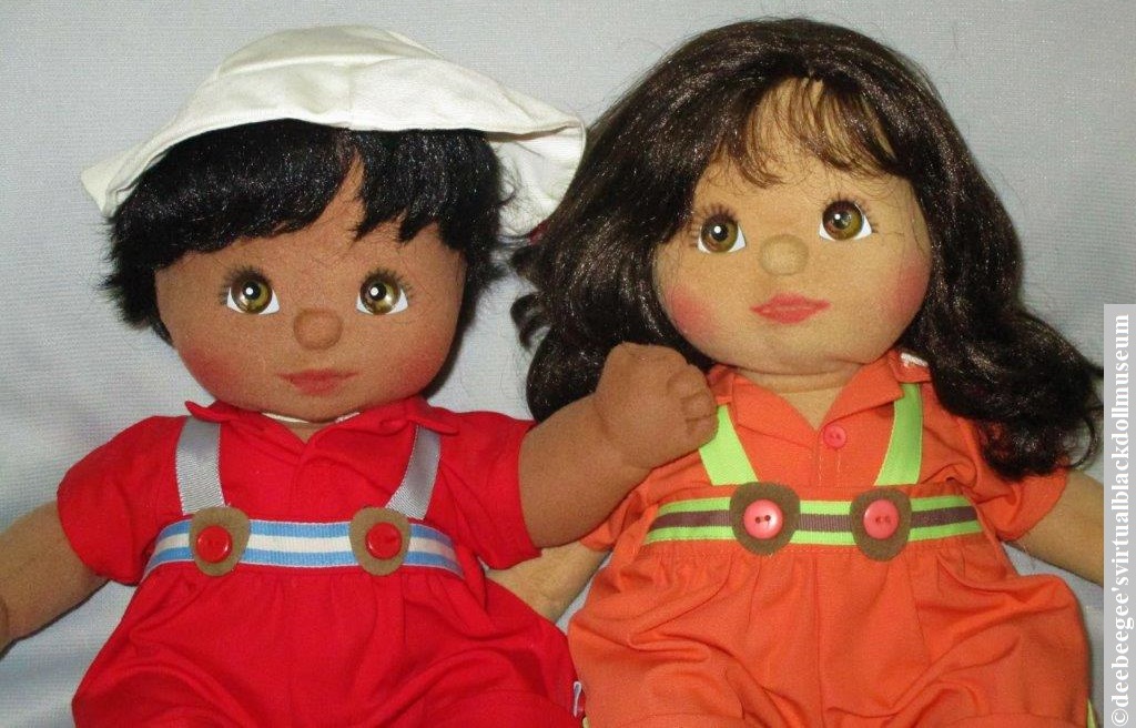 Other: Made to sit or stand, My Child dolls have teddy-bear-jointed arms and legs, jointed necks, bent baby legs, and stitched fingers and toes. Created as one-of-a-kind dolls, each doll has a unique serial number on its body tag. Offered in several different complexions, eye colors, hair colors and hairstyles, these two dolls represent brown and light-brown-complexioned children.