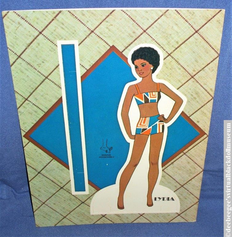 Description: The Lydia Paper Doll book includes the punch-out doll, stand, and six pages of 1970s stylish fashions. Lydia is illustrated as a young fashionable woman who sings and wears a short curly Afro hairstyle.