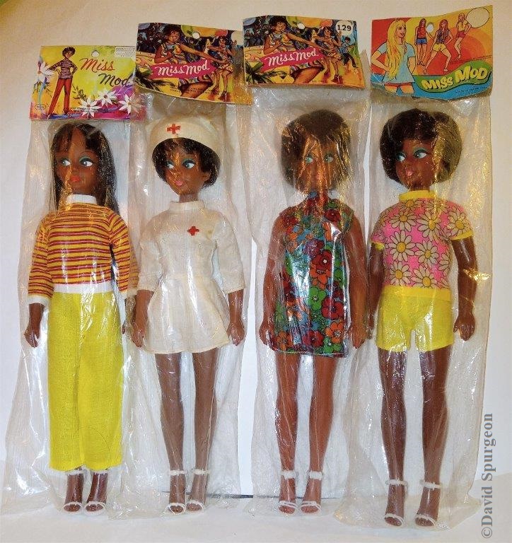 Clothes: Dressed in original mod-inspired fashions with white plastic high-heel shoes as illustrated in the gallery photos