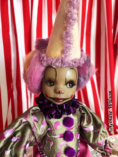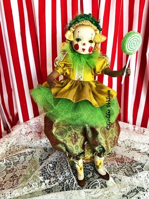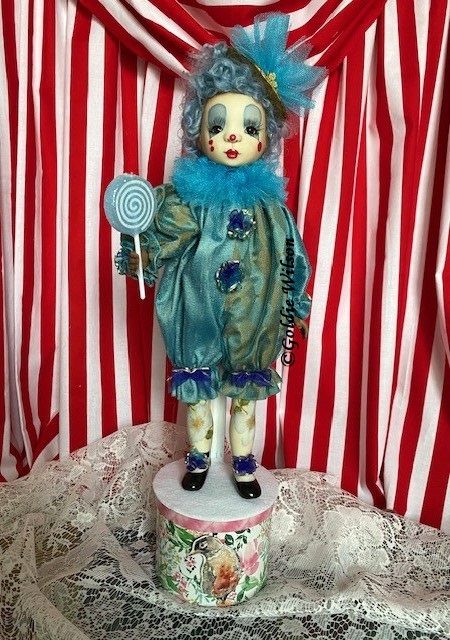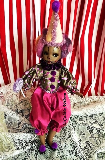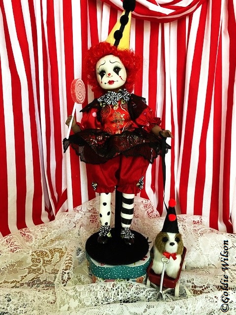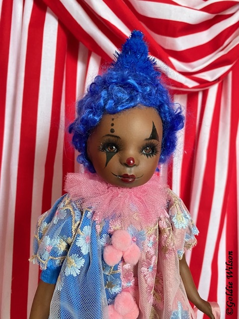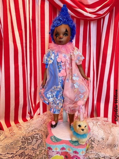 Other: On Saturday, April 13, 2024, The Maryland Society of Doll Collectors presented their circus-themed “Under the Big Top” luncheon. Goldie Wilson, the featured artist, designed limited-edition cloth souvenir clown dolls for each attendee. Additionally, as illustrated in this installation, Goldie offered one-of-a-kind porcelain clown dolls for sale which sold out immediately. The eight porcelain clown dolls are included in this installation.
