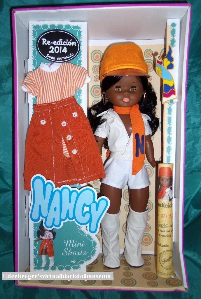 Other: Issued with a certificate of authenticity, Nancy Mini Shorts is from the 2014 Nancy Collection, a reproduction of the 1975 brown-complexioned Nancy. This version was made and sold only in Spain and was voted the favorite doll for 2014 by Nancy doll fans. Nancy Tusset and Nancy Negrita, two other reissues of 1975 dolls, were also released in 2014. The late Begona Otero, a fellow doll collector and Barbie enthusiast from Spain purchased Nancy Mini Shorts for the curator in October 2014.