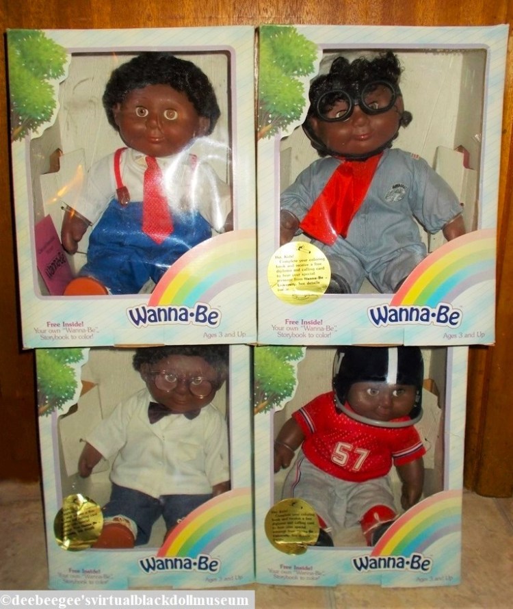 Other: The Wanna-Be dolls are career-inspiring playthings created by the corporation of the same name with a 1986 copyright. Dolls in the series included male and female pilots, doctors, teachers, executives, firefighters, soldiers, a male football player, and a female cheerleader.