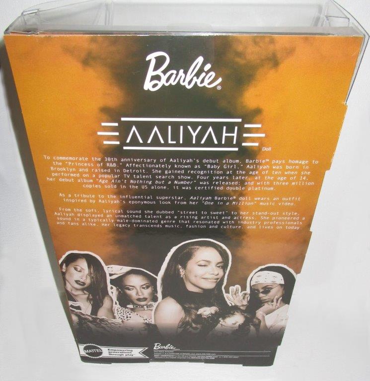 Other: To honor the life and sound of chart-topping, record-breaking American musician Aaliyah, Mattel Creations’ Barbie Music Series Aaliyah was initially offered to Barbie Club 59 members on January 15, 2025, on the eve of what would have been the R&B singer/actresses’ 46th birthday. Available quantities sold out at the Mattel Creations website within minutes! Once again, additional quantities sold out on January 16, 2025, when sales were offered by Mattel Creations to the general public. January 26, 2025, was the official release date of this highly sought-after Black Label Signature Series portrait doll of Aaliyah Dana Haughton who died tragically in a plane crash on August 25, 2001.