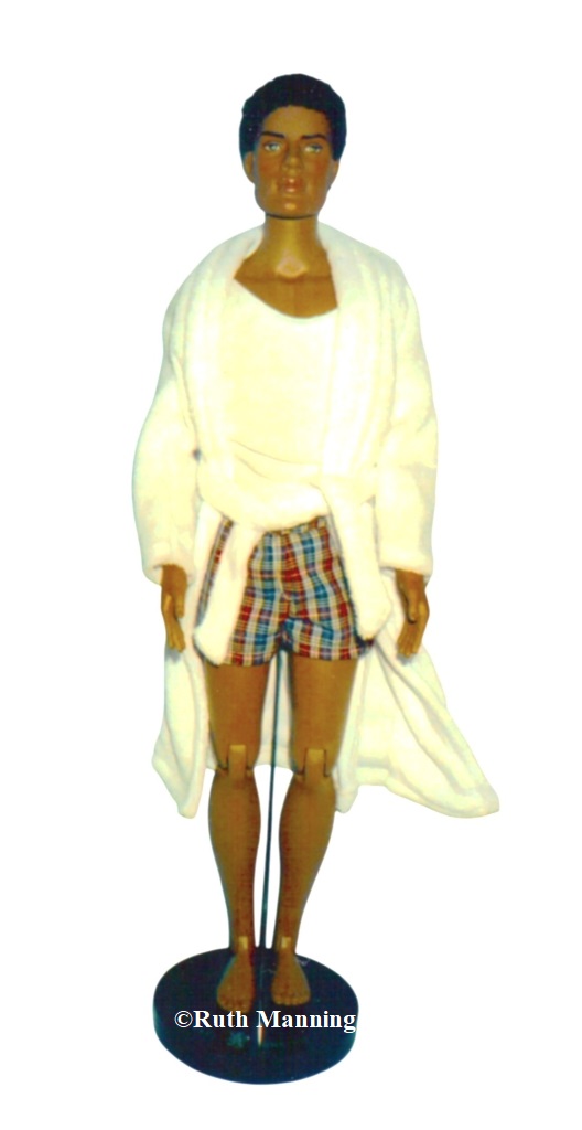 Other: Russell Williams is part of the Matt O’Neill series by Robert Tonner. Russell was introduced as Matt’s friend and Esme’s boyfriend. Esme is a 16-inch African American doll by Robert Tonner from the Tyler Wentworth series. Russell’s articulation beyond the usual five points is above the abs, at the elbows, wrists, knees, and ankles. Redressed Ultra Basic Russell’s three-piece suit, shirt, and tie were made by Debra Richardson from a Matt O’Neill clothing pattern. Matt O’Neill clothing ensembles that fit Russell Williams were sold separately.