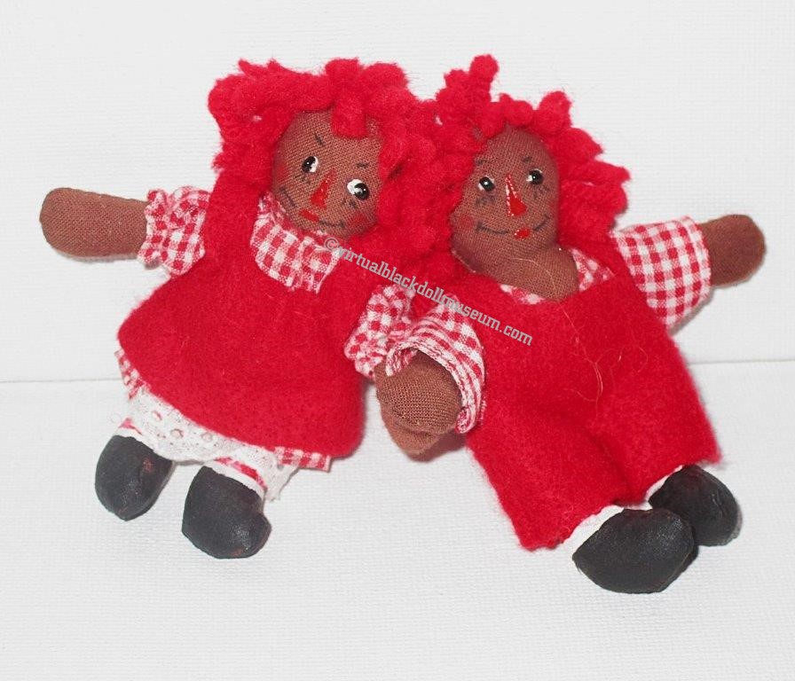 The original Raggedy Ann and Andy dolls were white characters. In later years, doll manufacturers and individual doll artists reimagined the doll characters as Black. Gayle Garbarino of Not So Raggedy Acres has made an assortment of Black Raggedy Ann, Raggedy Andy, and Beloved Belindy Dolls.