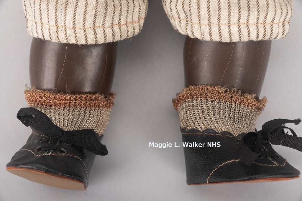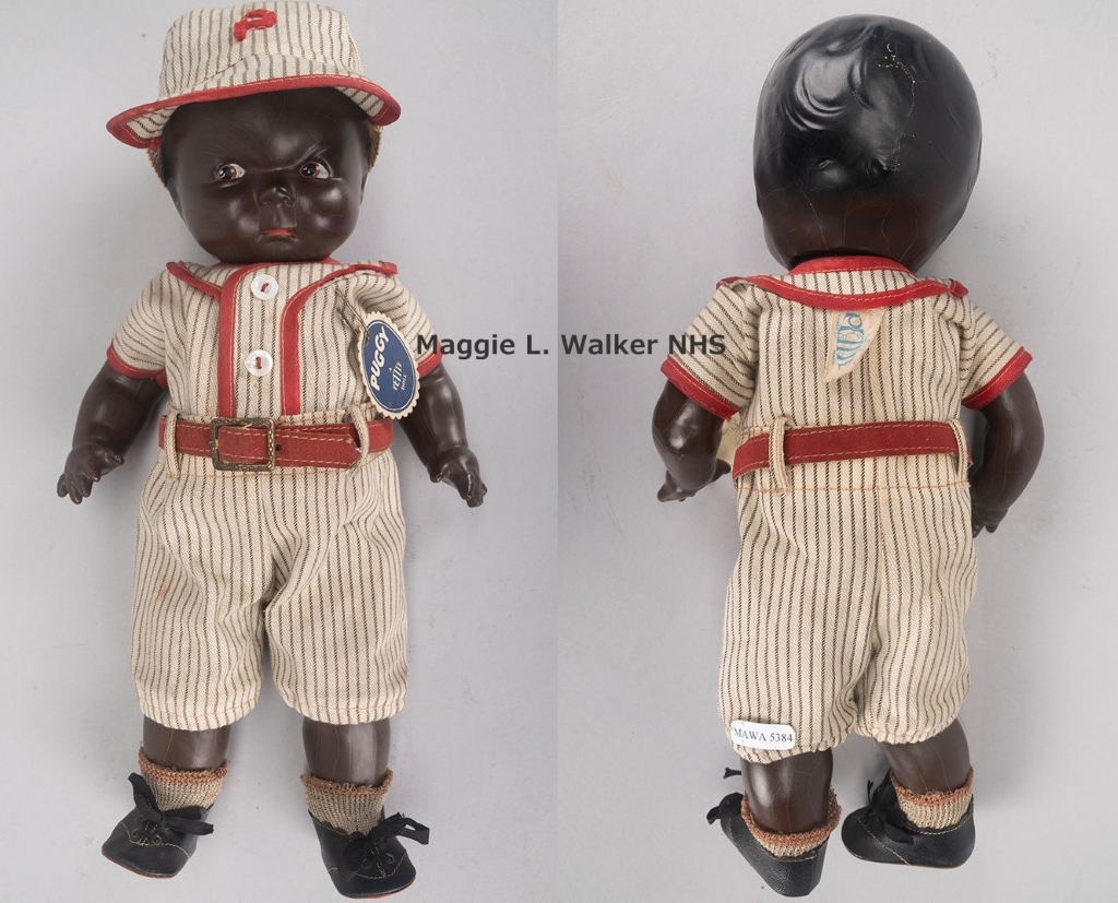 Maggie Lena Walker (1864-1934), civil rights activist, trailblazing entrepreneur, and beloved African American community leader, “devoted her life to defeating racism, sexism, and economic oppression. Mrs. Walker chartered a bank, a newspaper, and a store 17 years before American women had the right to vote, and fostered black entrepreneurialism when Jim Crow laws threatened African American progress” (Maggie L. Walker National Historic Site). Devoted to teaching children literacy through her bank and instilling racial pride by seeking out black dolls (like Puggy), Mrs. Walker ensured that Black community children owned dolls that represented their heritage. Read more here.