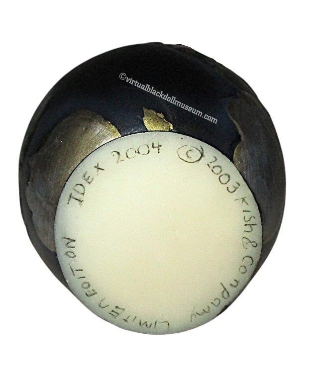 Marks: (On the back of both dolls’ breast plate) ©2003 Kish / Company; Evie in peach is hand-signed on the back by the artist and has a Kish & Company hang tag. (Globe) …Kishlets…what the world needs now, printed in gold letters, is on the lower rim of the globe. ©2003 Kish & Company Limited Edition IDEX 2004, is on the bottom of the globe in black letters.