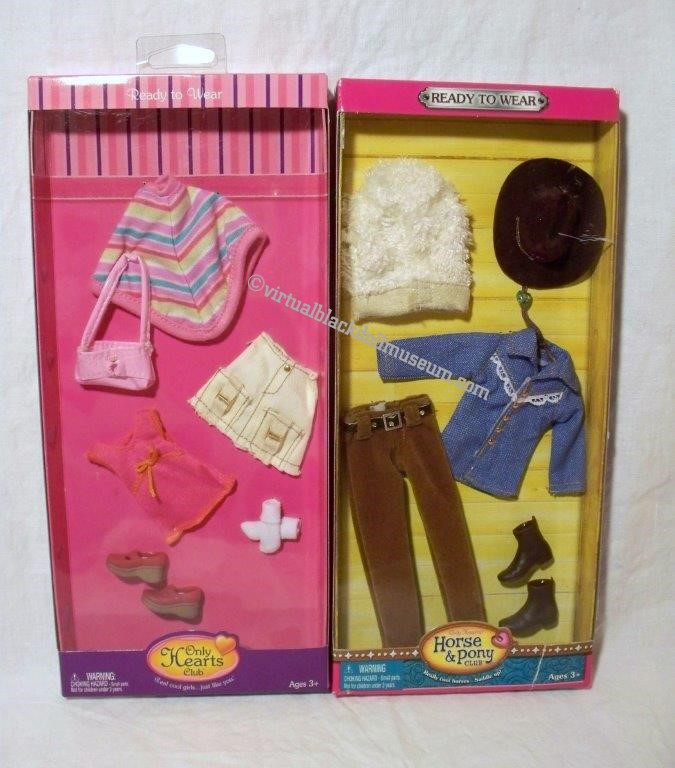 Gallery Left to right, top to bottom: Briana Joy #00104 and #00114; close-up of Briana Joy #00104 holding Longfellow; Kayla Rae and Sydney; close-up of Kayla Rae; close-up of Sydney; two boxed Only Hearts Club fashions, #00226 and Western Riding Outfit #03212 from the Horse and Pony Club series; and a head shot collage of Briana Joy, Kayla Rae, and Sydney.