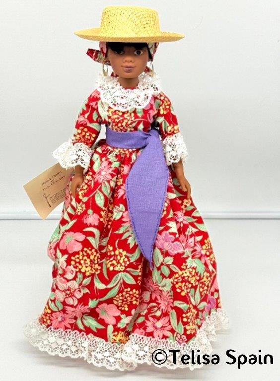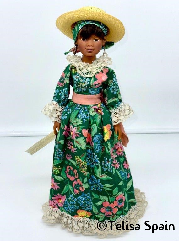 Other: Marie Laveau and the other 14-inch vinyl dolls by Gambina represent Creole, Caribbean, African, and African American women of the 1800s. Created by Charles Vincent Gambino in New Orleans, Louisiana, each doll is numbered and has a hang tag booklet or story card that describes its period story. The company made 12- to 13-inch vinyl dolls that similarly depict historical and Southern-themed women of color from the company’s perspective. The vinyl dolls were made in Hong Kong and dressed in the U.S. Gambina also made cloth dolls with lithographed faces and yarn hair with multiple attached ribbons and some porcelain variations.