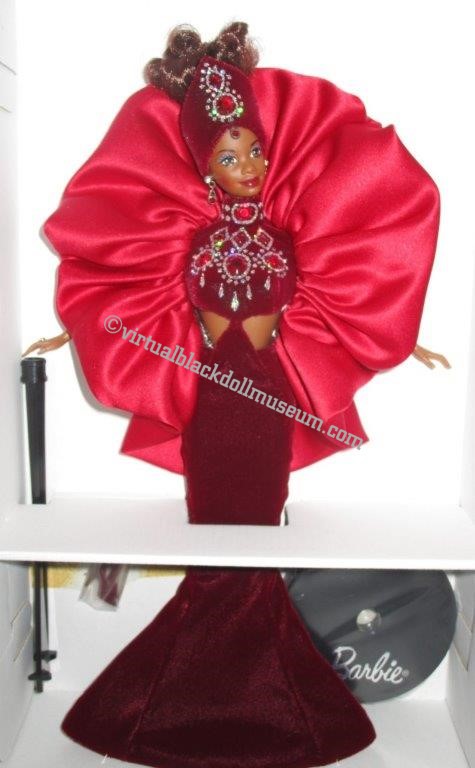 Other: Ruby Radiance Barbie is one of five dolls and the only African American doll in the Jewel Essence Collection, designed by Bob Mackie for the adult collector. The back of the box describes the series and includes information about the designer: