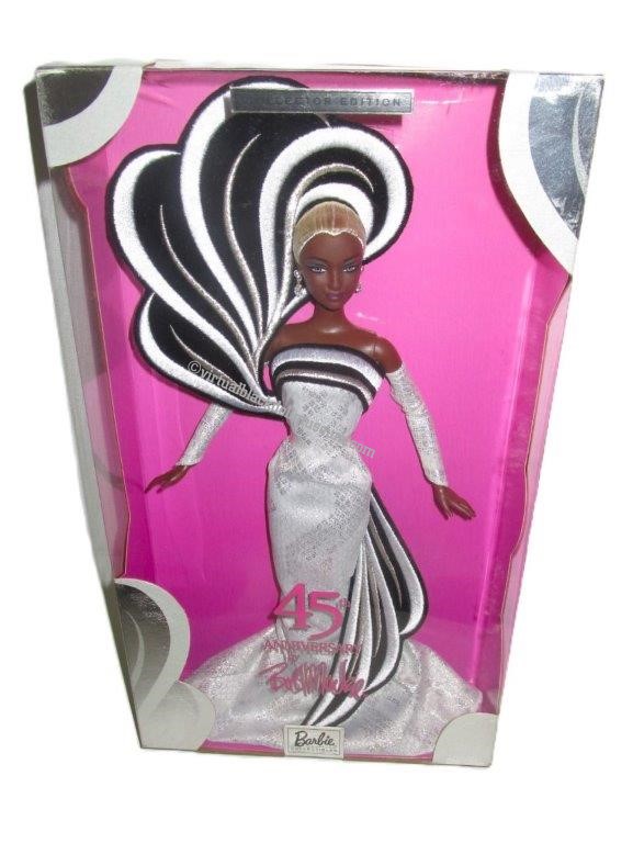 Other: Designed for the adult collector, the back of the box features the African American and Caucasian versions of this Bob Mackie-designed Barbie that commemorates Barbie’s 45th anniversary.