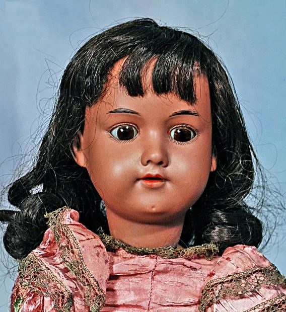 A circa 1910 brown-bisque Kestner 143 doll is a rare find. #Kestnerdoll #dollmadeingermany, #brownbisquedoll, #antiqueblackdoll