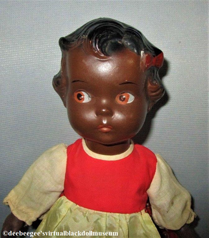 1940s-1950s hard plastic ebony-complexioned black doll. #blackdoll #1940s-1950sblackdoll #souvenirdoll