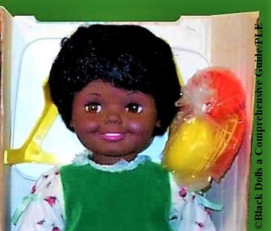 Crumpet by Kenner is an 18-inch battery-operated doll that serves tea. #mechanicaldoll #batteryoperateddoll #1970sdoll #blackdollbyKenner