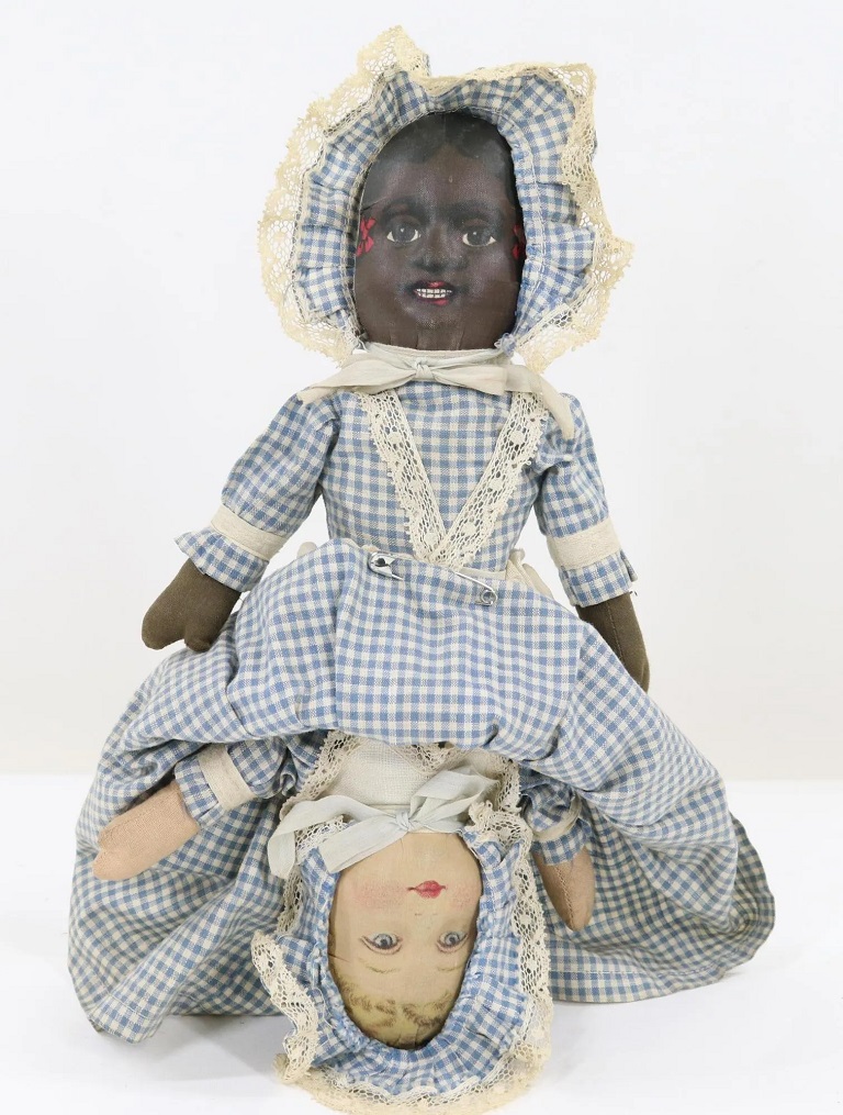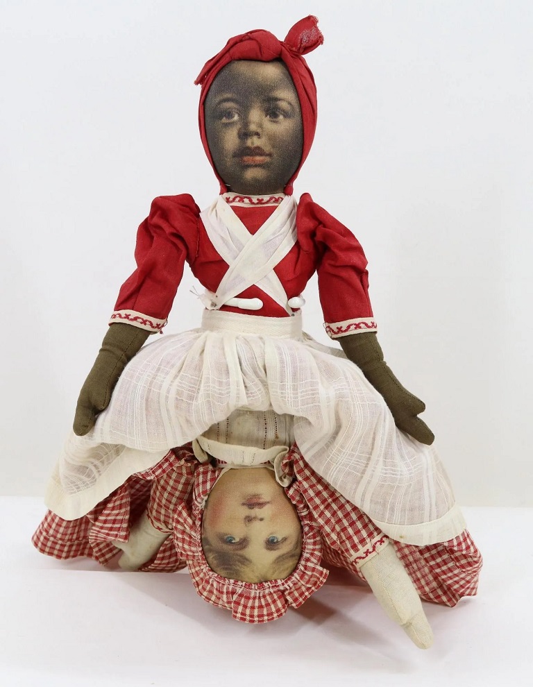 A nice example of a Bruckner Topsy-Turvy or double-sided doll, circa 1901. #blackdoll #topsyturvydoll #antiqueclothdoll