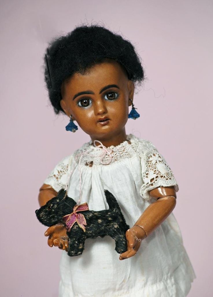 Late-1800s to early-1900s French brown complexioned bébé doll is today’s virtual Black doll museum installation. #antiqueblackdolls