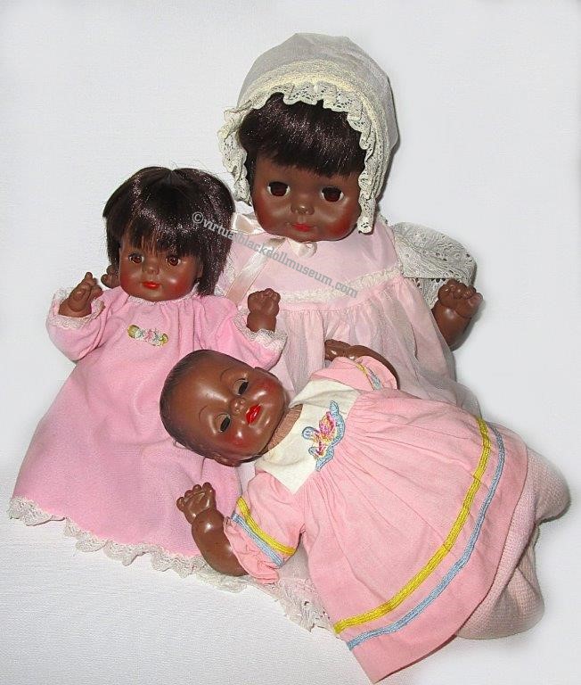Vogue’s Baby Dear One dolls in sizes 18 and 12 inches are featured in this installation. #voguedolls #babydeardolls #babydearone #babydolls #blackbabydolls #popular1960sdolls