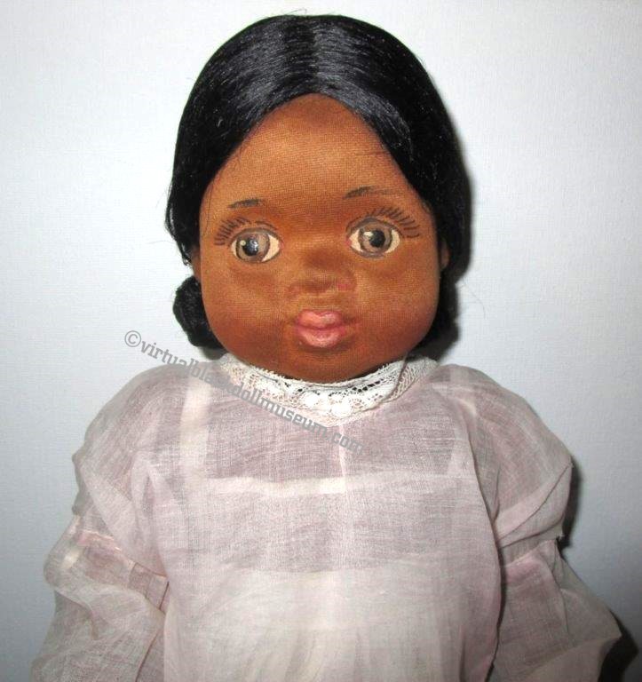 A ca. 1920s-1940s mask face doll is featured. #maskfacedoll #clothdoll #blackclothdoll
