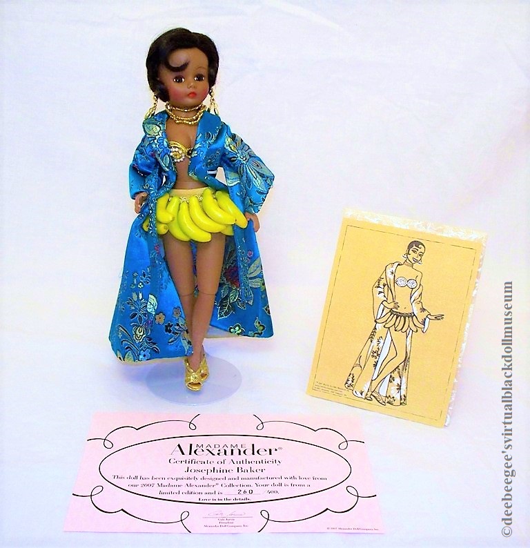 Name: Josephine Baker Made by and When: Madame Alexander, 2007 Material: Hard plastic Marks: (On the back) ALEXANDER, (on the buttocks) 200/400* Height: 10 inches Hair, Eyes, Mouth: Black bob-style wig, brown sleep eyes with attached molded upper eyelashes and painted lower eyelashes, closed mouth with painted red lips Clothes/Accessories: The metallic and pearl bikiniContinue reading “Josephine Baker”