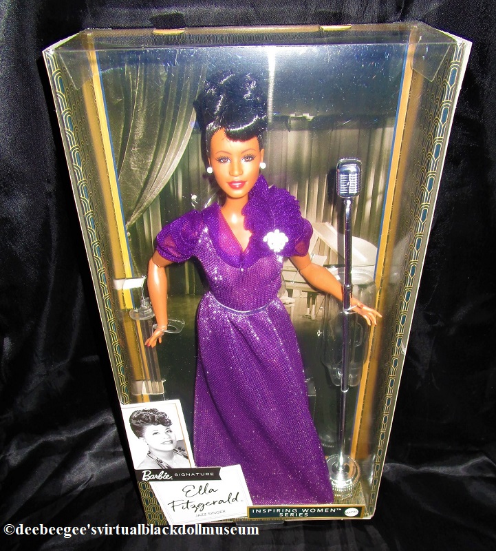 Name: Ella Fitzgerald Barbie Made by and When: Mattel, 2019 Material: Articulated vinyl Height: 11-1/2 inches Hair/Eyes/Mouth: Black rooted hair in an elegant upswept style with bangs/brown painted eyes, painted eyelashes/slightly parted wine painted lips Clothes: Purple full-length gown has silver shimmery accents and purple tulle at the collar and sleeves. A white broach accentsContinue reading “Ella Fitzgerald Barbie”