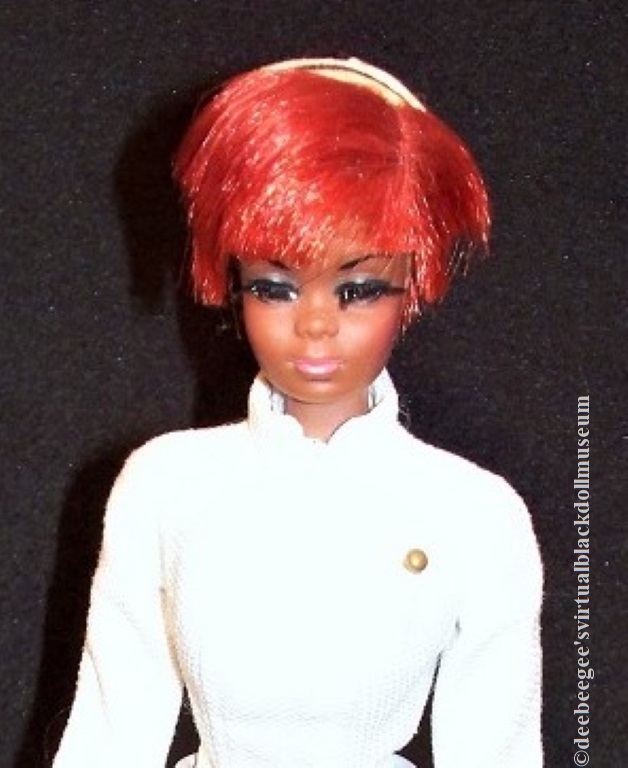 Mattel’s 2nd issue of Julia, released in 1970, wears a one-piece nurse uniform. The doll represents the role Diahann Carroll played in the sit-com, Julia. #juliadoll #celebritydoll #fashiondoll #blackfashiondoll #vintagefashiondoll #blackhistory #blackdollhistory